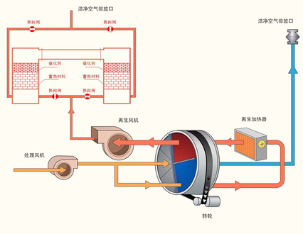 把有機廢氣加熱到760℃以上,將有機廢氣氧化生成CO2和H2O,從而凈化廢氣,并回收分解時所釋出的熱量,以達到環(huán)保節(jié)能的雙重目的,是一種用于處理中高濃度揮發(fā)性有機廢氣的節(jié)能型環(huán)保裝置。